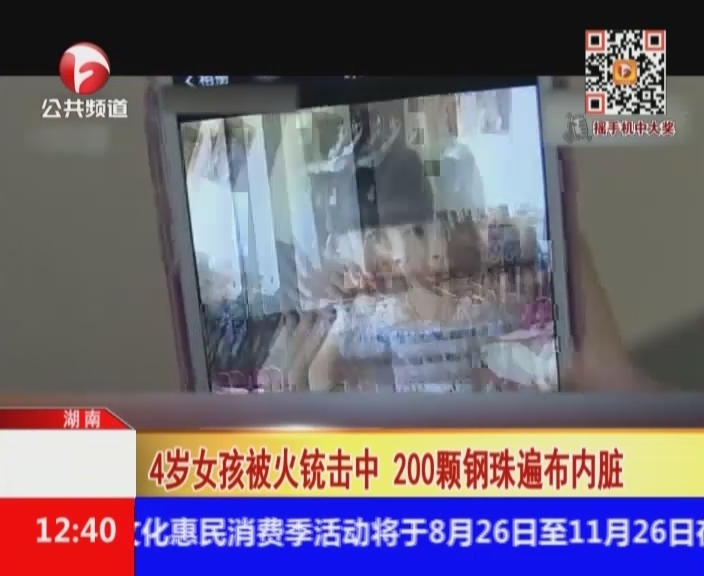 8月19日,湖南衡阳4岁女孩希希和小伙伴玩耍时,被火铳打中,百余颗钢珠重创其胸腹部等多个部位。事后,希希被送入当地医院抢救,体内20余颗钢珠被取出。20日晚,希希被转到湘雅医院接受治疗。
