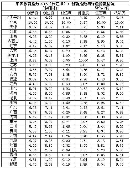 新引入的“中国教育指数2016:绿色指数”测算结果显示:目前,中国教育综合(自然和社会系统)生态较为健康的地区主要有上海、北京、江苏、广东、湖北和浙江,这一结果与综合指数的高度吻合。与发展指数和创新指数相比,中国各地区绿色指数的整体差距较小;但作为衡量教育社会生态的法治度水平差距明显,其整体水平还亟待提高。
