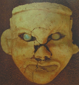 红山文化时期,女神彩塑头像的双颊及唇部已经施朱。