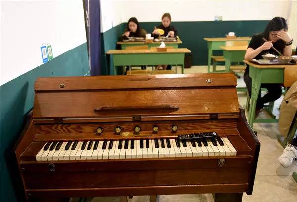 整个餐馆二十多平米,不是肯德基、也不是农家乐风格,一个水泥砌成的讲台,二十张老式的课桌,分成四排摆放在屋里。