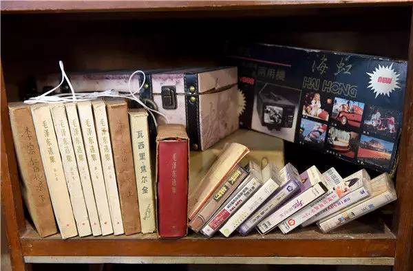 一台老钢琴靠着墙边,墙角里,放着一个微型老电视,还有老收音机,旧书。