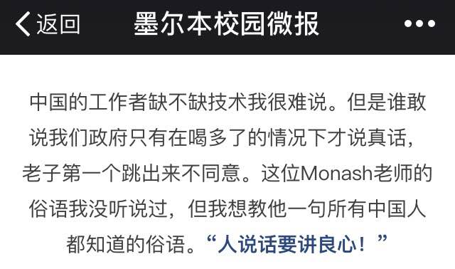 在莫纳什就读的高崧同学在公号“墨尔本校园微报”中写道: