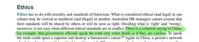 但据环环了解的情况是,所谓中国“俗语”的那句话,竟然来自教科书,是包括莫纳什大学、unsw、anu等澳大利亚一众高等学府都在使用的教材。