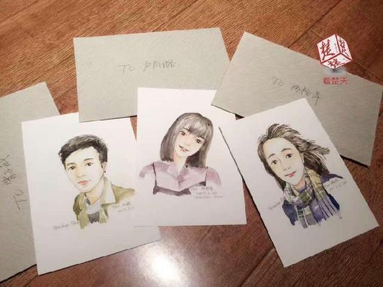 近日,该班学生顺利结束毕业答辩,范晶晶给班上每位同学送出了由自己亲手绘制的水彩明信片,明信片正面是她为每个学生手绘的人物肖像,反面则是她亲手写上的昵称和对学生的祝福。