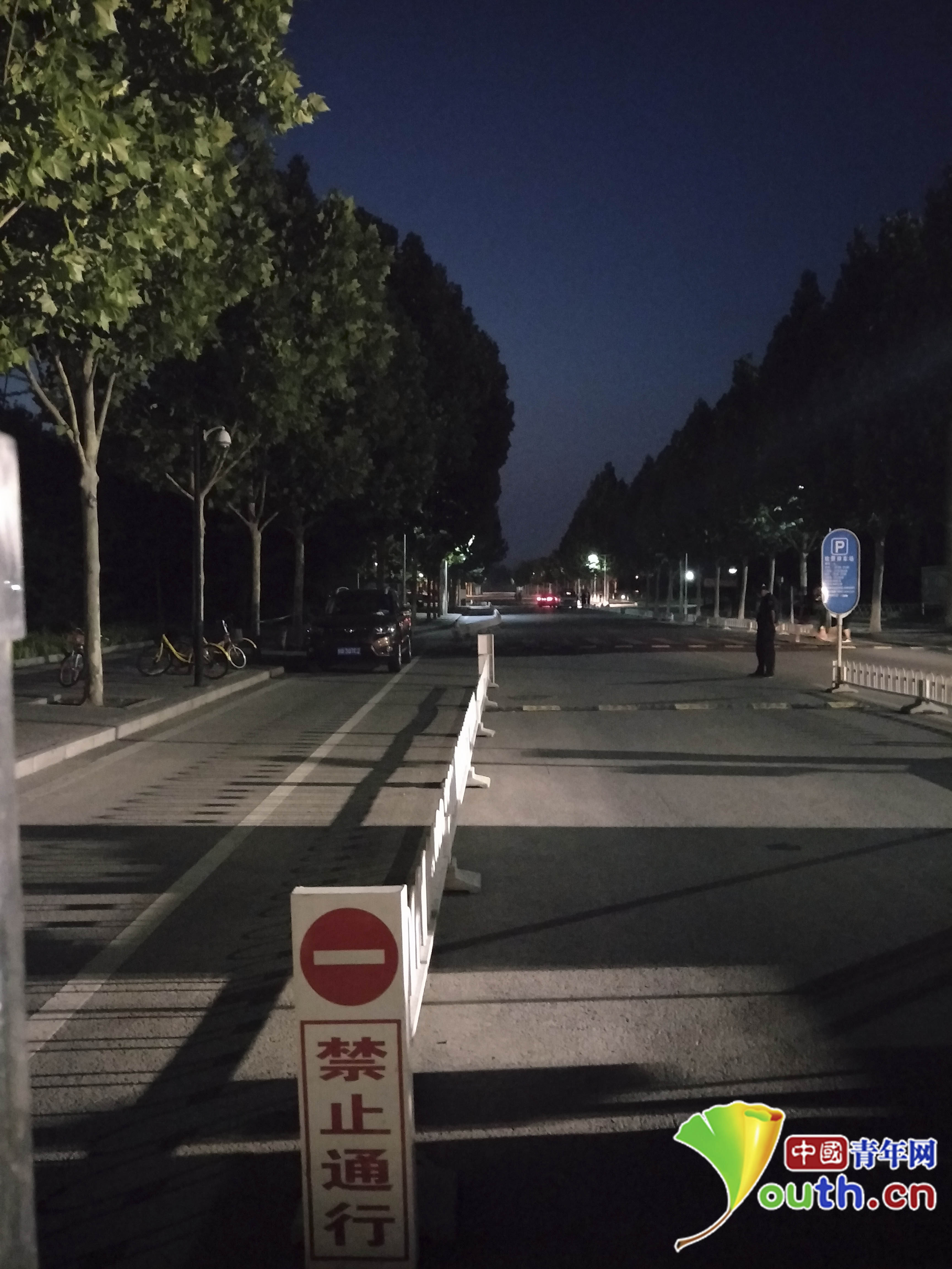 6月20日晚20时,中央财经大学沙河校区南门入口处的马路寥寥无人。中国青年网实习记者蒋艳慧 摄。