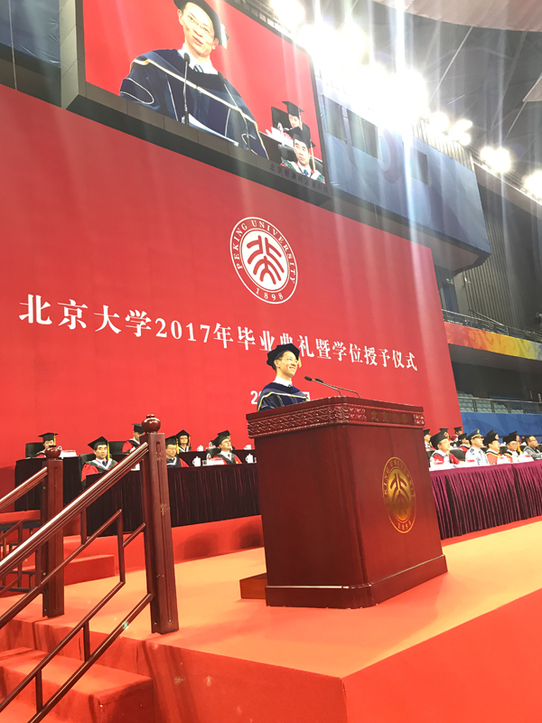 校友代表、拉卡拉集团董事长兼总裁、光华管理学院1987级校友孙陶然则提到,现在的北大学生应该“想清楚”,想清楚自己的人生应该怎么过,努力拓展自己人生的宽度和深度。拓展宽度就是增强自己的体验,首先要做一个好人,其次是按自己的想法做自己的事,最后是“so what”。人生的意义在于生活中体验的东西。作为北大人更要追求人生的深度,坚持北大人的情怀“达则兼济天下,穷则独善其身。”