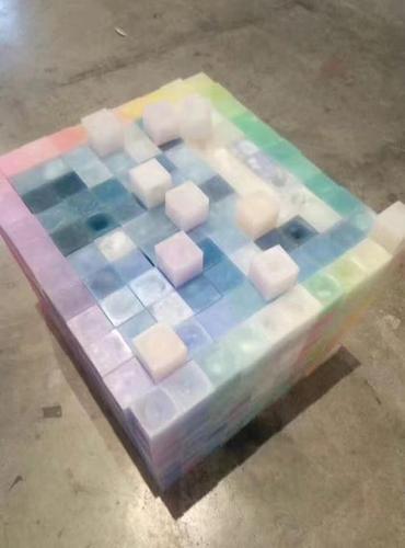 1000个蜡块被叠成了正方体,颜色五彩渐变,视觉和质感上都很新鲜。“看到照片的时候我都懵了。”