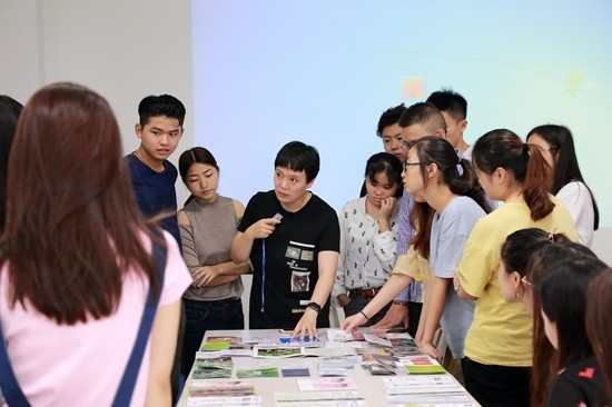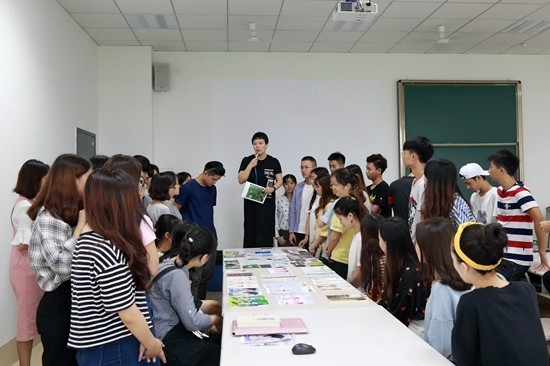 钟舒老师主要教授视觉传达设计专业课程。版式设计课上,学生用电脑完成作品设计后,她总爱要求全班学生将作品实物铺开,开“班级作品展”,自己则站上椅子,逐一点评。