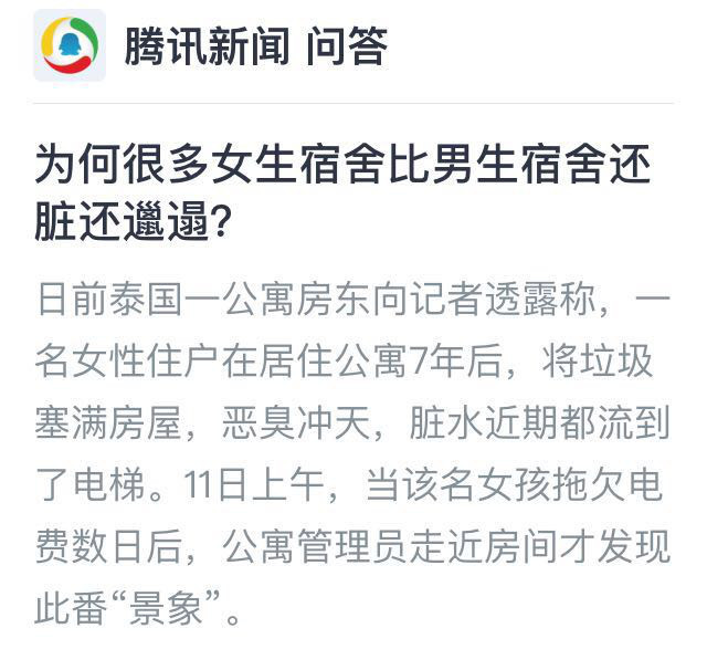 那么,为何很多女生宿舍比男生宿舍还邋遢?企鹅问答想问问这个“千古之谜”,很多答主分享了自己的经历。