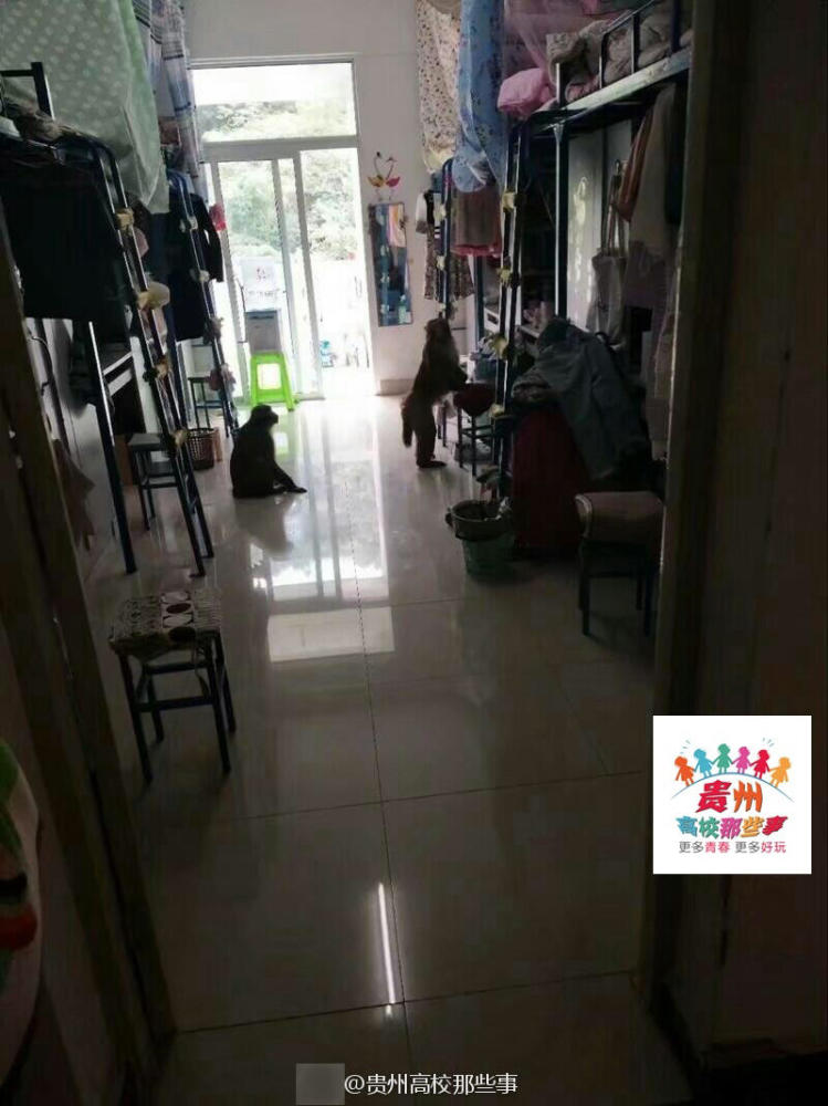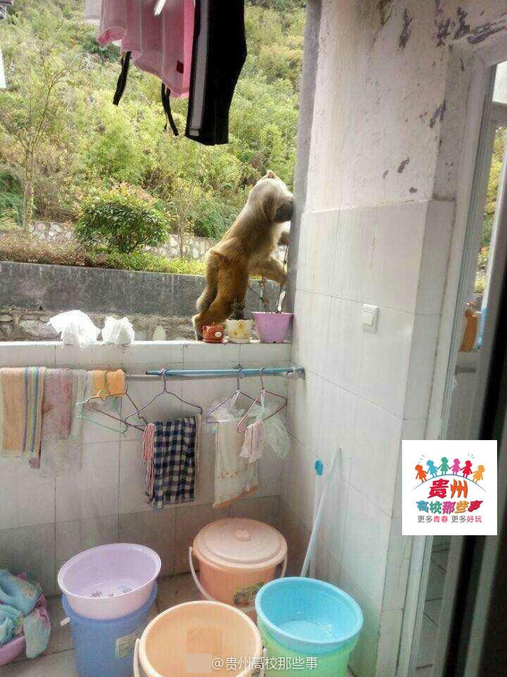 10月7日,贵州师范学院的校园里,猴哥突然造访,成功的进入了女生宿舍“作了案”。