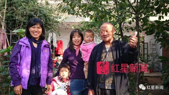 村里的垃圾分类“三剑客:(左起)陈立雯、带着小孩的李发珍、李遂正 图片来源:红星新闻