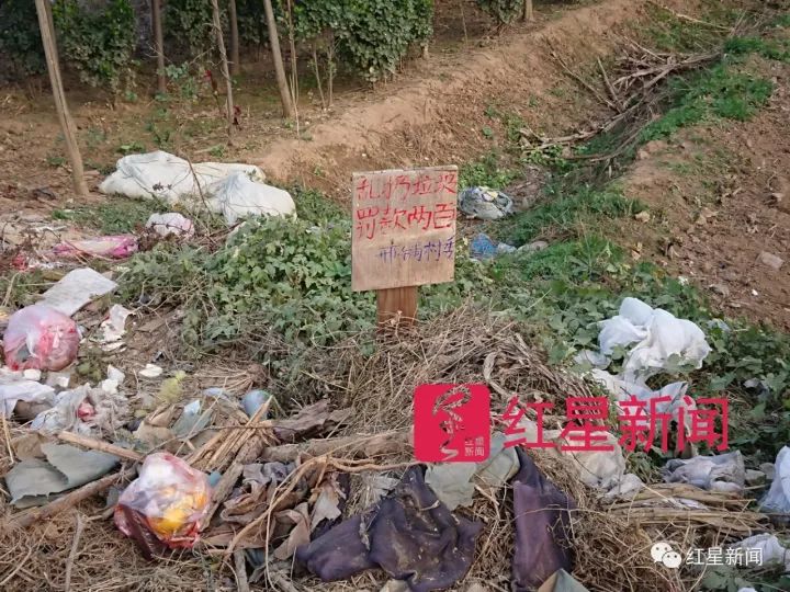 虽然村里的道路上有警告牌,还是有人乱扔垃圾 图片来源:红星新闻
