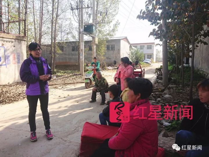 陈立雯(左)在给村民宣讲垃圾分类的好处 图片来源:红星新闻