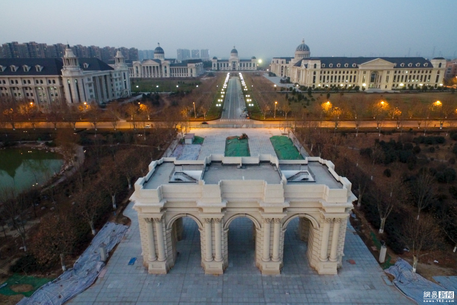 2017年12月31日,在河南农业大学龙子湖校区门口,一个酷似“凯旋门”的建筑引得路人侧目。这座“凯旋门”建筑呈3拱门连体式,虽然还在修建中,且被蓝色围挡团团围住,但怎奈“凯旋门”外形初显,在附近一众普通建筑中格外显眼。