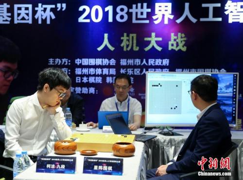 资料图:4月27日,中国围棋职业九段棋手柯洁在福州挑战由中国研制的围棋人工智能“星阵”,弈至145手,柯洁中盘认负。中新社记者 王东明 摄
