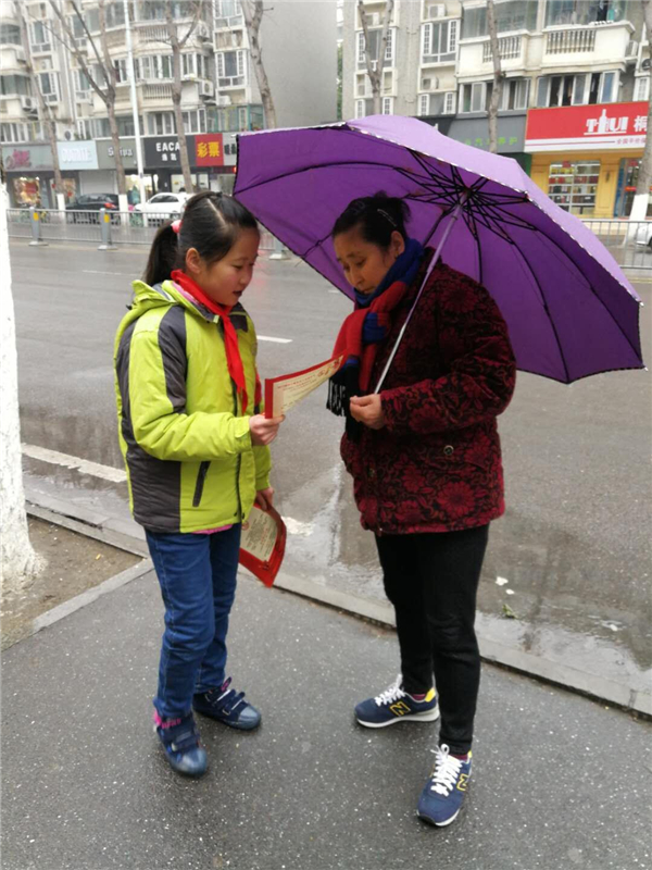 小小队员们走进小区、商场、社区广场等地方,积极地宣讲“禁放烟花爆竹”的意义。“活动进行了将近5个小时,虽然很累,但是我们都很开心。”小队成员杨恩童说,与小伙伴们一起向路人讲解禁放烟花爆竹的意义,营造一个环保低碳文明的节日环境,同时还锻炼了自己交流的能力,让她收获不小。