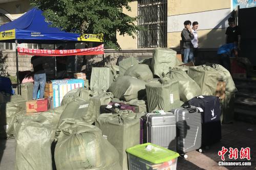 毕业季,黑龙江大学校内快递点堆满了毕业生行李。受访者供图