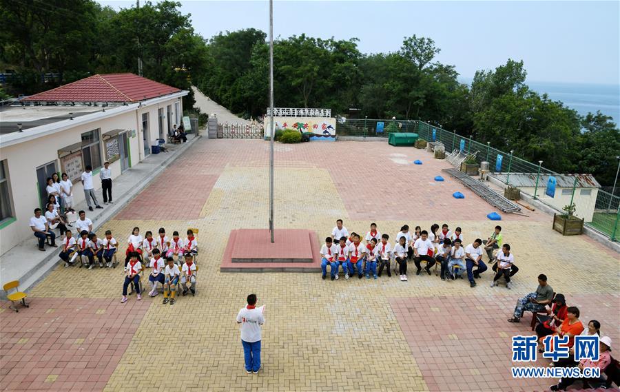 6月26日,灵山岛学校2019届毕业生代表在毕业典礼上发言。 当日,青岛西海岸新区灵山岛学校为2019届全部10名毕业生(小学部8名,初中部2名)举行毕业典礼,下学期这些孩子都将离开海岛外出求学。 近年来,随着灵山岛岛民不断迁出以及年轻人外出打工,岛上唯一的学校生源逐年减少,但学校本着义务教育阶段“一个都不能少”的宗旨,尽责、尽心做好教育工作。 新华社记者 李紫恒 摄