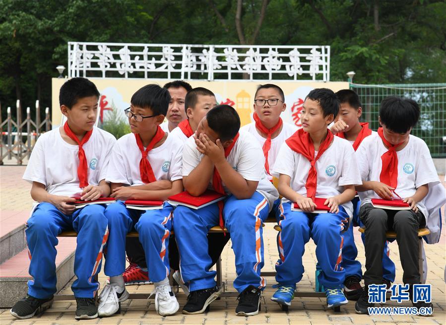 6月26日,灵山岛学校2019届毕业生在毕业典礼上。 当日,青岛西海岸新区灵山岛学校为2019届全部10名毕业生(小学部8名,初中部2名)举行毕业典礼,下学期这些孩子都将离开海岛外出求学。 近年来,随着灵山岛岛民不断迁出以及年轻人外出打工,岛上唯一的学校生源逐年减少,但学校本着义务教育阶段“一个都不能少”的宗旨,尽责、尽心做好教育工作。 新华社记者 李紫恒 摄