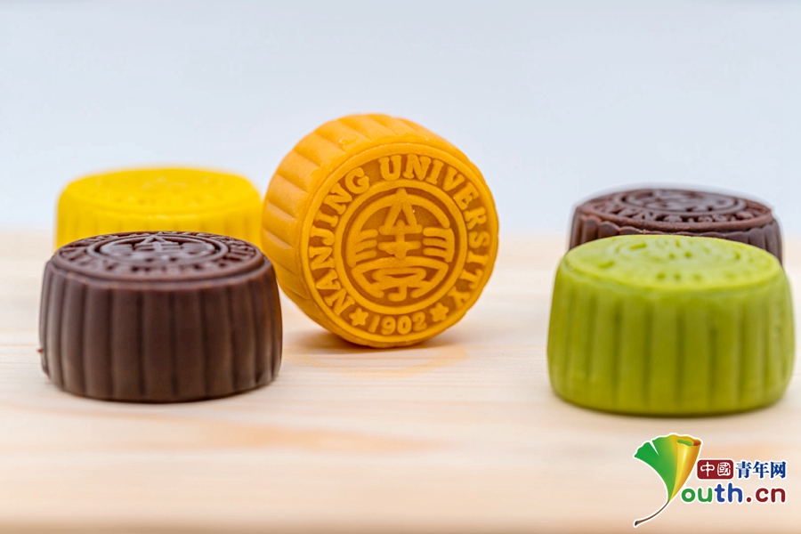 南京大学今年推出四款定制月饼,有巧克力、抹茶、榴莲以及上新的流心奶黄四种口味,好看又好吃,受到学生喜爱。@南京大学 供图