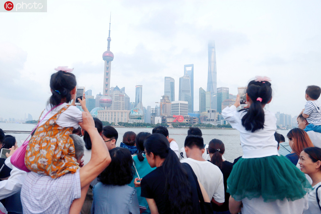 国庆长假过半但上海黄浦区各大旅游地标如人民广场花坛、南京路步行街、外滩灯光秀依旧游客人流如潮,其中大人带小孩的家庭游客占大部分,游玩景点同样也促成家长亲子爱国教育,一戴着红领巾的少年队员持巨大五星红旗游外滩吸引关注,其家长表示给她在景点留下和国旗在一起的照片比单纯的比心、比V的姿势要更有意义。(行云/IC photo)