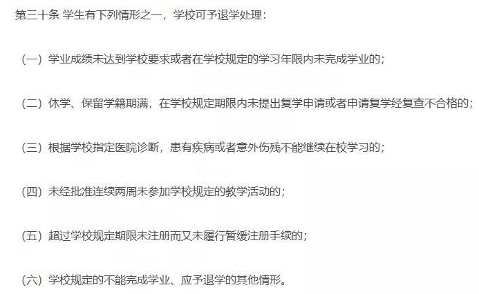根据教育部《普通高等学校学生管理规定》,学生有以下情形之一,学校可予退学处理: