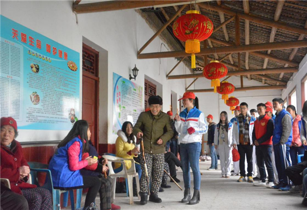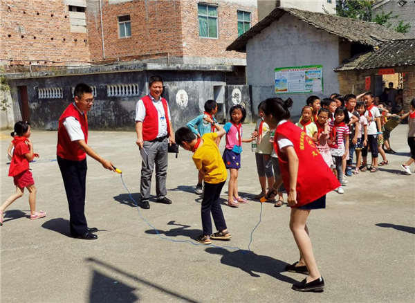 “高铁小红帽”和结对帮扶的农村学校小朋友们玩游戏