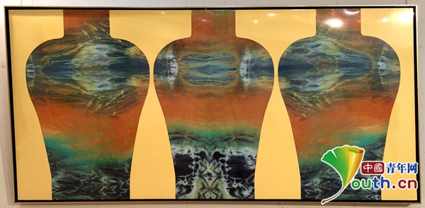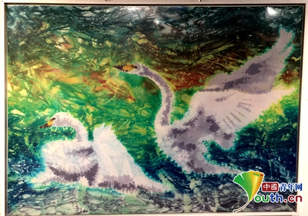 吕唯平的扎染作品《瓷里住过的自信少年》。中国青年网记者 王龙龙 摄