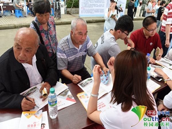 中国青年网南昌6月19日电(通讯员 张利庭 卢梦)数十米长的林荫道,帐篷、长桌拼接而成的咨询台,滚动播放的宣传片,来来往往的服务工作人员,络绎不绝的家长与2017届高考生……6月18日上午,华东交通大学举办校园开放日暨招生咨询活动,为“准新生”就报考问题答疑解惑,“花椒”独具魅力的校园文化和先进典型的榜样力量赢得交口称赞。