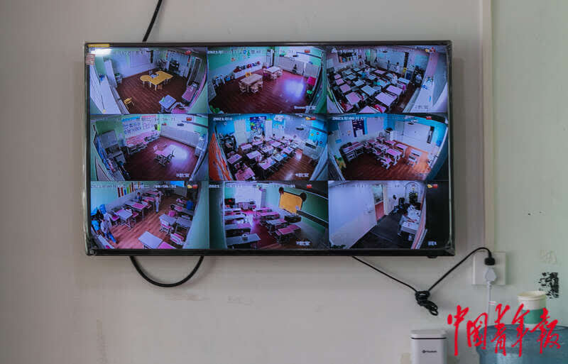 8月17日,北京市海淀区绮美大厦,一家教育培训机构的监控视频上显示着各个教室的状况。这家机构针对低龄学生开设暑期辅导,目前仅有少量学生在上课。实习生 王一凡/摄
