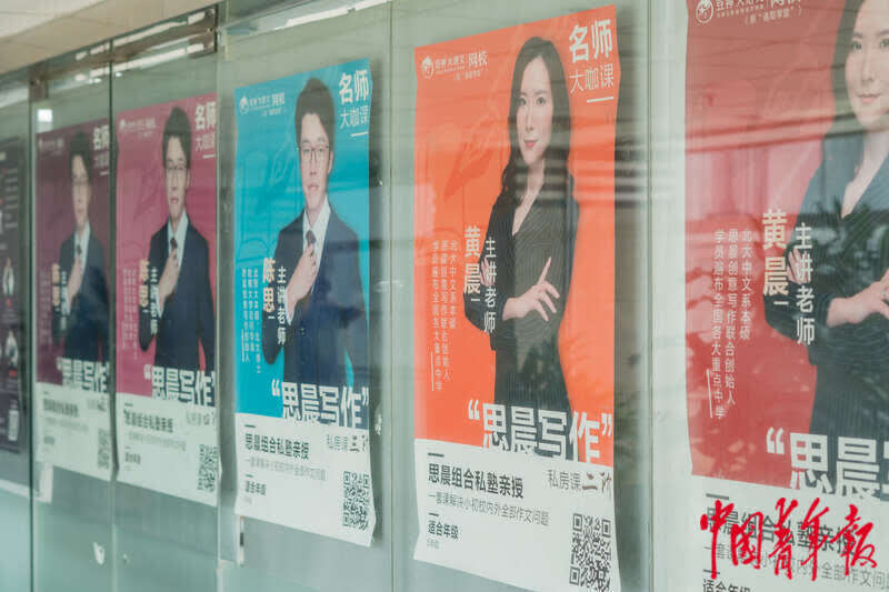 8月17日,北京市海淀区银网中心,一家教育培训机构墙上贴着“名师”的海报。在北京市当日举行的“双减”政策新闻发布会上,北京市人力社保局新闻发言人陆晓播介绍,北京市针对培训行业储备了充足的岗位资源,明确了教学教辅类、技术支持类、运营职能类、市场销售类四大类岗位储备方向,有针对性地加强典型岗位的储备工作,帮助现有教培行业从业人员顺利过渡就业。实习生 王一凡/摄