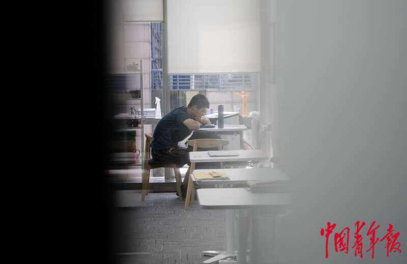 8月17日,北京市海淀区银网中心,一位学员还在教室内逗留。实习生 王一凡/摄