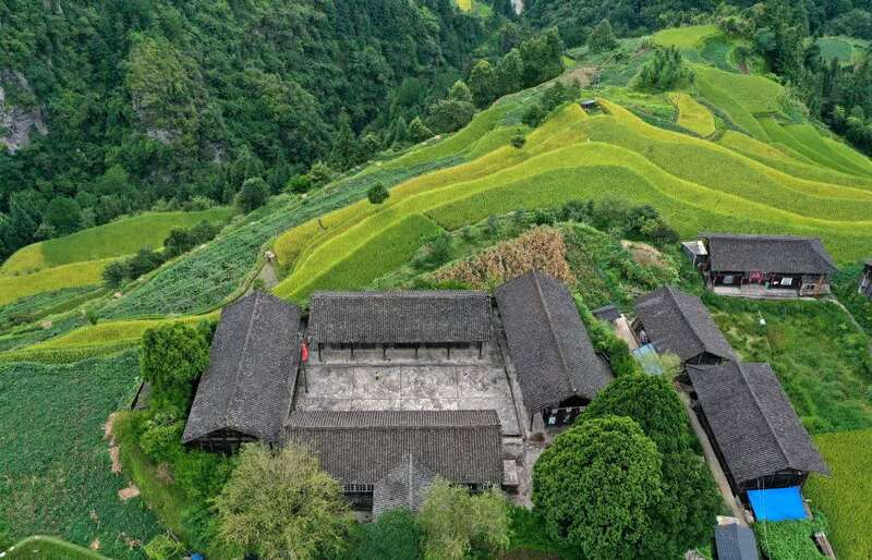↑9月1日拍摄的贵州省黔东南苗族侗族自治州丹寨县排调镇党干村教学点(无人机照片)。