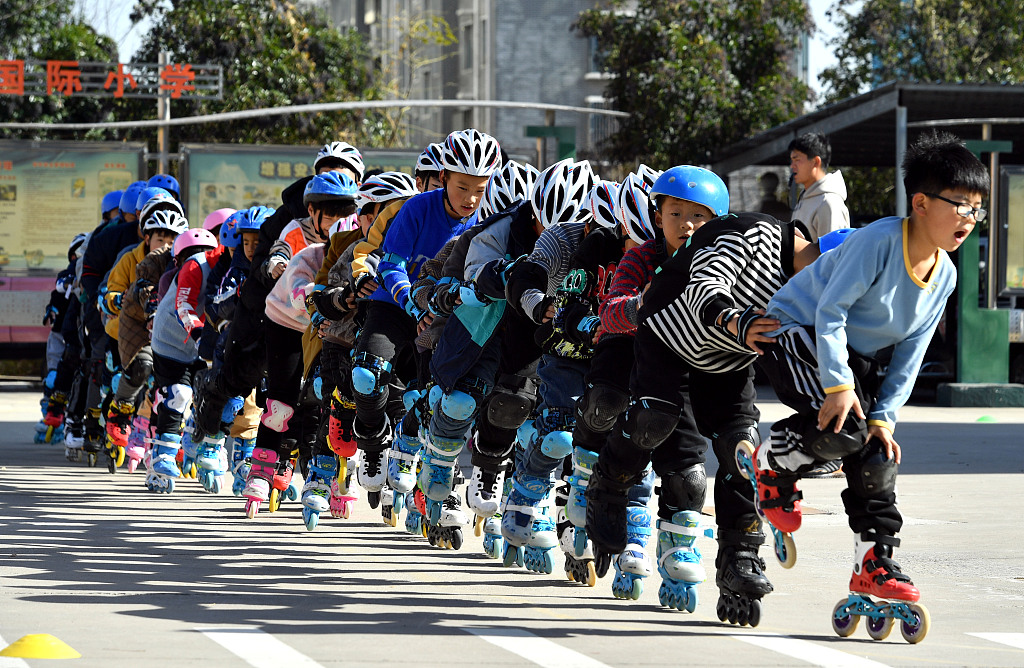 河南商丘将轮滑运动引入校园 丰富学生文体生活