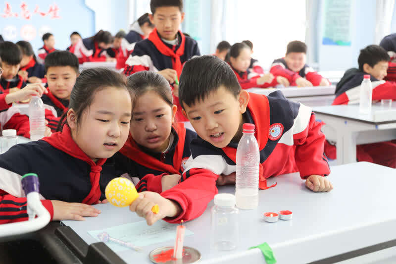 12月23日,河北唐山路北区实验小学,同学们在特色课程上进行科学小实验。李霞/摄