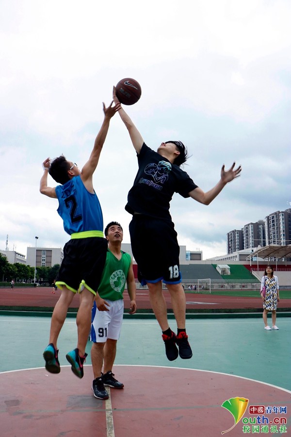 大四学长王茂飞带领两位大一学弟正进行着最后一场篮球训练。大一学生唐一翰在谈及这位学长时说道:“非常感谢师兄这一年来对我们的照顾跟鼓励。希望师兄步入社会之后的人生道路能越来越平坦,有时间回学校跟我们一起聚聚,打打球。我们会想念他的。”中国青年网通讯员 杨速 提供