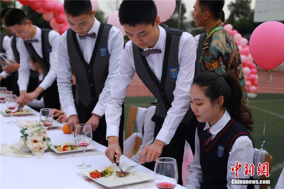 3月7日,为了给“女生节”的女生们一个惊喜,四川成都一高校的男生们打造了一个浪漫的草坪派对。图为男生们亲自给女生们煎牛排、准备甜点,用标准的西餐用餐礼仪给女生最好的体验。熊云竹 摄