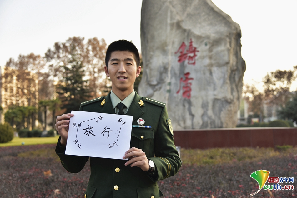 元旦前夕,武警工程大学语言文学专业的郭德正写下了自己的2017年关键词--"旅行"。从小喜欢旅行的他,画下了路线图,丽江、昆明、大理、南京、苏州,他希望可以在路上一路前行、一路收获。中国青年网通讯员 权智睿 摄