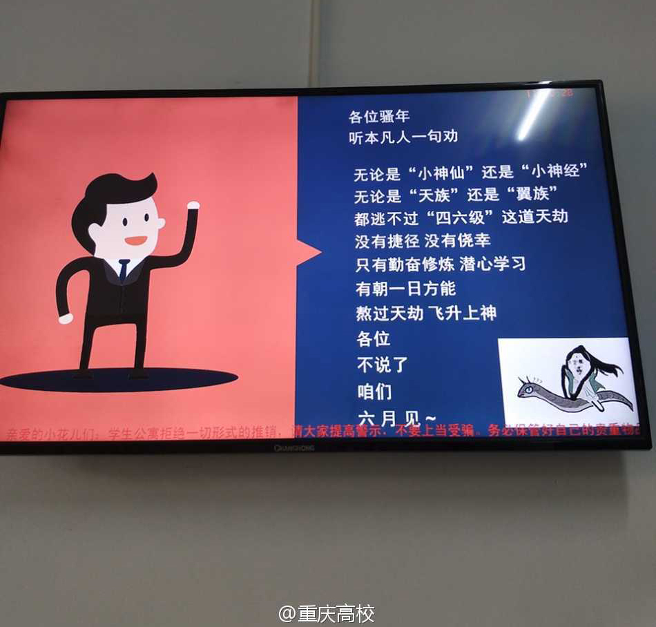女生寝室下的屏幕上播放这“最萌宣传语”。