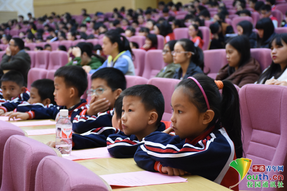 小学生专心听讲座,学习雷锋精神,学做好榜样。 中国青年网通讯员 蒙姜程 摄