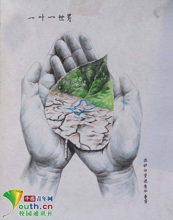 02 图为志愿者手绘的水资源保护作品——《一叶一世界》。中国青年网通讯员张浪 供图