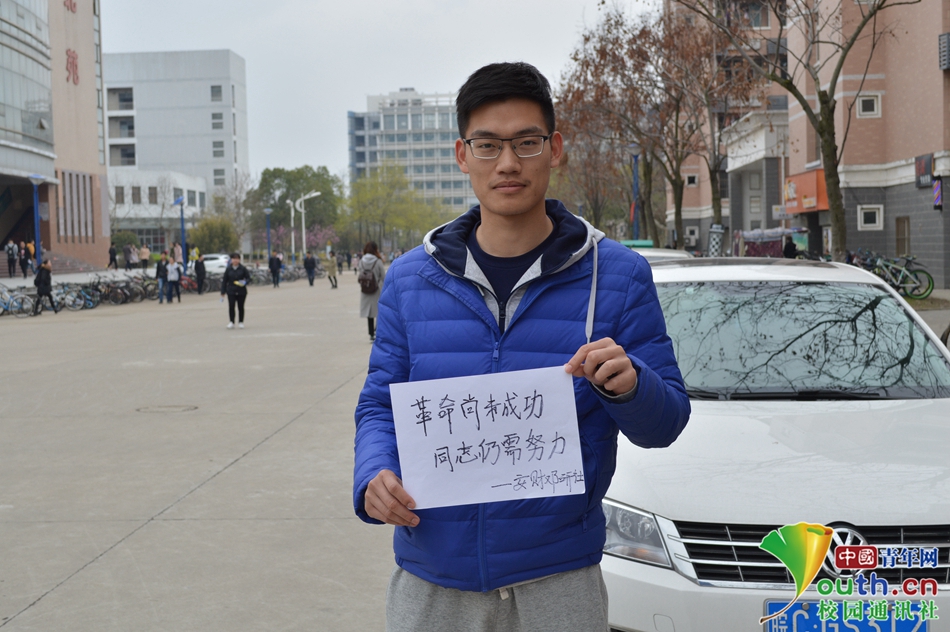 “革命尚未成功,同志仍需努力”,经济与贸易学院的朱靖林同学道。中国青年网通讯员 李静婷 摄