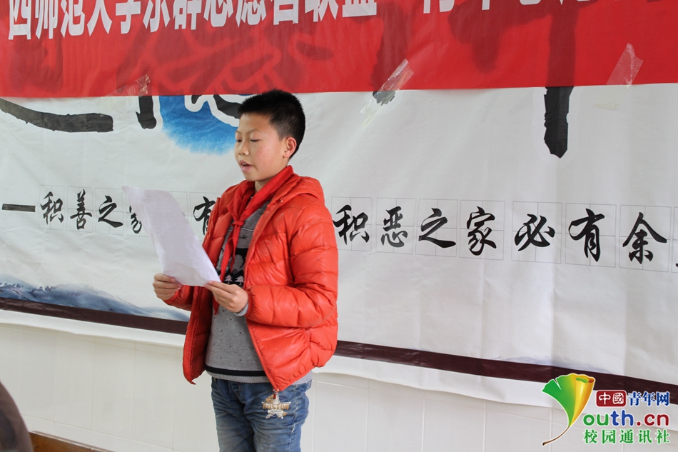 学生代表发言,表示对志愿者的感谢和社会的关注。中国青年网通讯员 潘丽颖 提供