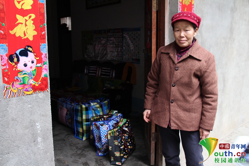 给当地扶贫户送去爱心物资后,老奶奶在门口目送志愿者离开。中国青年网通讯员 潘丽颖 提供