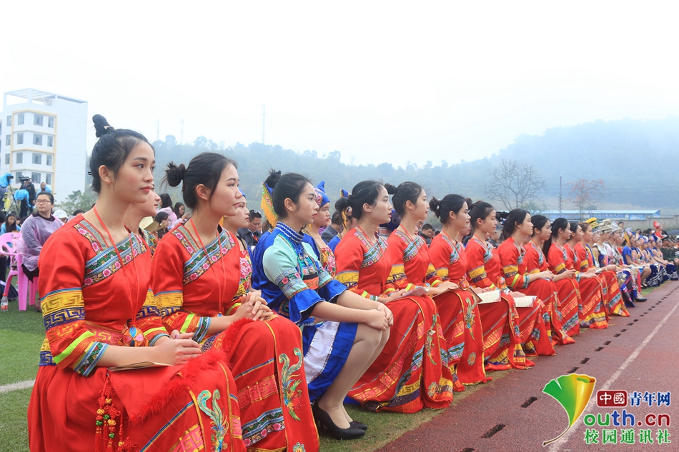 姑娘们整齐地排坐着看表演,自然端庄。中国青年网通讯员 李永坚 摄