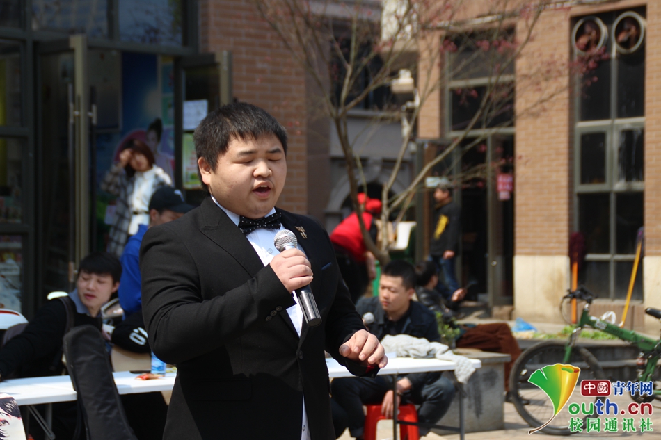 一首《等待》,高音萦绕,不禁惹得路人停下脚步,静静欣赏。中国青年网通讯员 何倩妮 摄