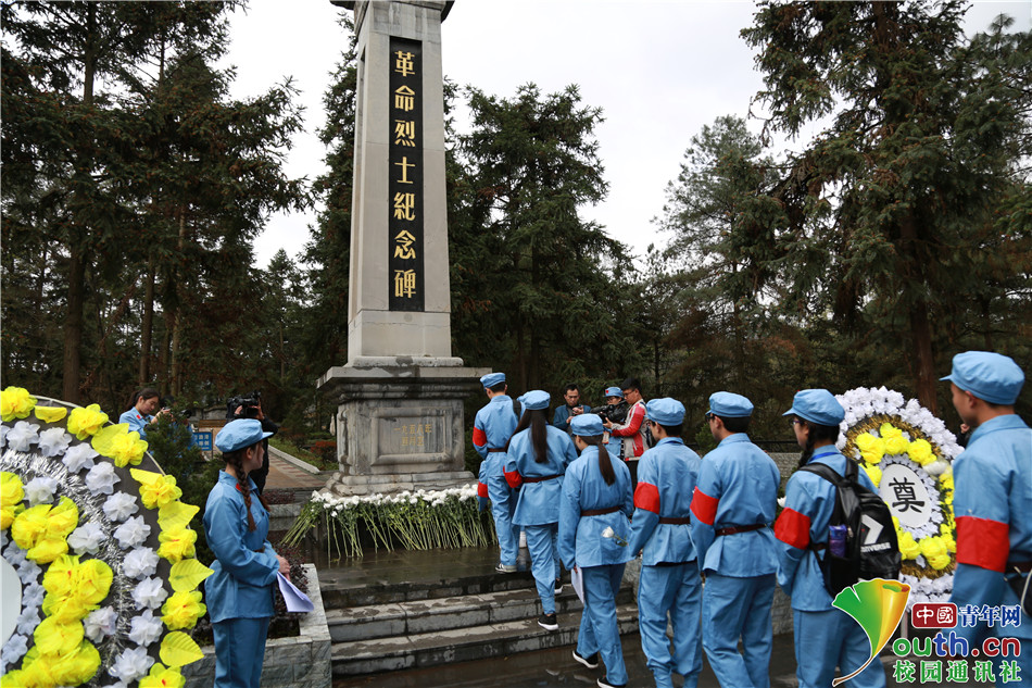 04 3月31日,贵州工程应用技术学院师生身着红军装束,向革命烈士献花,以此缅怀革命烈士。中国青年网通讯员 李雨 摄