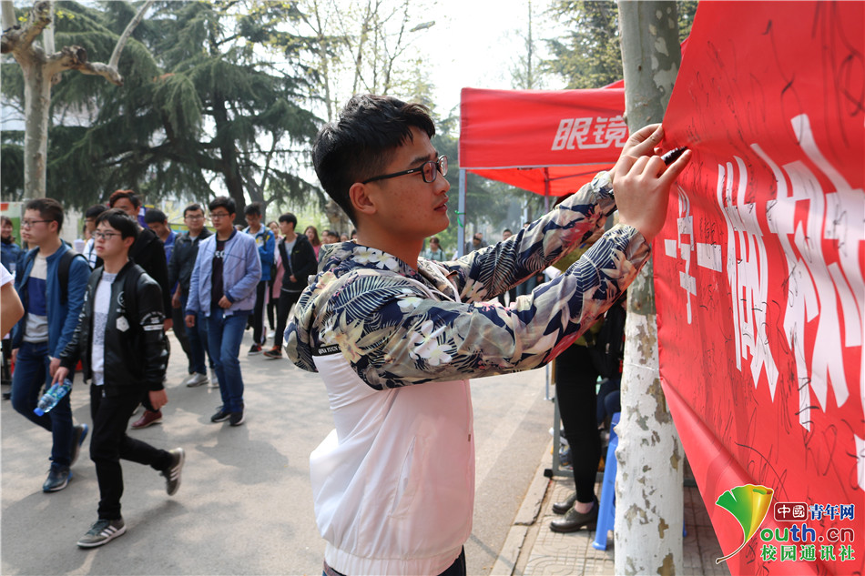 04 大学生在条幅上签字。中国青年网通讯员 李馨明 摄