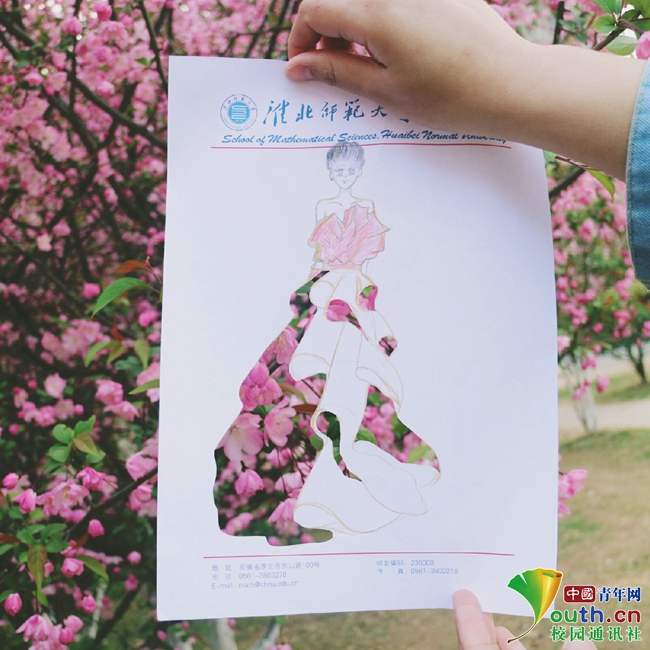 图为师大学子画笔下的模特,盛放的花朵点缀成最美的裙装。中国青年网通讯员 钱程 摄