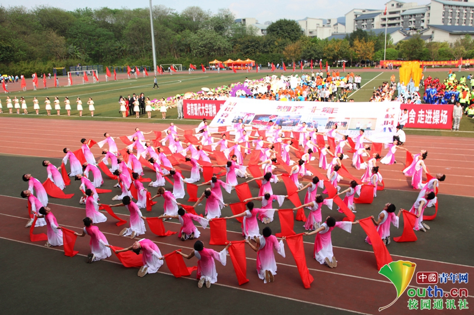 同心圆展示团结友善,洋溢柔美魅力,清新的舞蹈情景剧让运动会开幕式更加精彩! 中国青年网通讯员 陈磊 摄